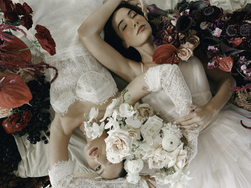 Fashion and florals wove seamlessly together, styled to feel refined. Centering a lesbian couple was an intentional choice, highlighting the need for more inclusivity and representation within the wedding industry.